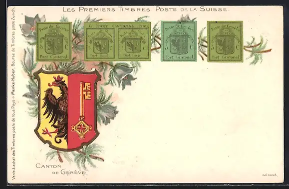 AK Genf, Erste Briefmarken der Schweiz mit Wappen