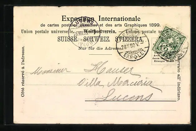 alte Ansichtskarte, gelaufen 1899, Stempelspur, guter Zustand