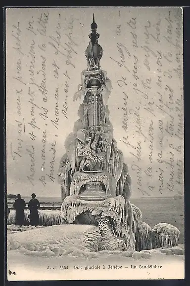AK Genf, Vereister Leuchter, Bise glaciale a Geneve