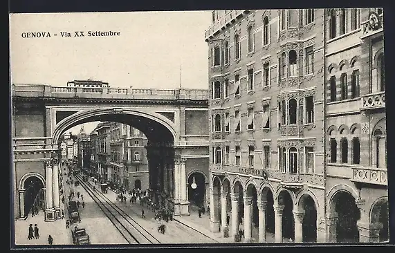 AK Genova / Genua, Via XX Settembre, Ortspartie mit Strassenbahn