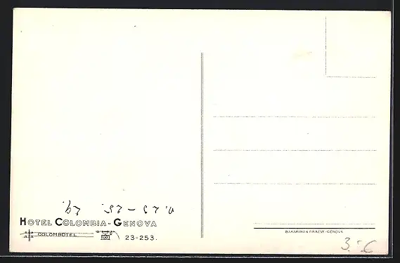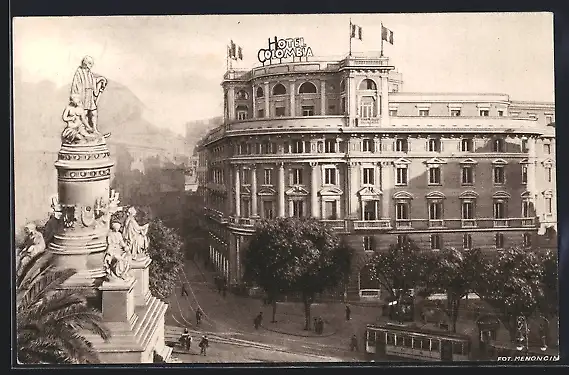 AK Genova, Hotel Colombia mit Strassenbahn