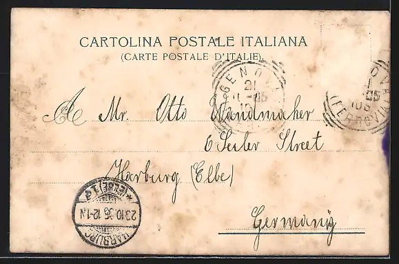 alte Ansichtskarte, gelaufen 1905, Briefmarke entfernt, rückseitig Oberflächenschaden, Stempelspur, guter Zustand