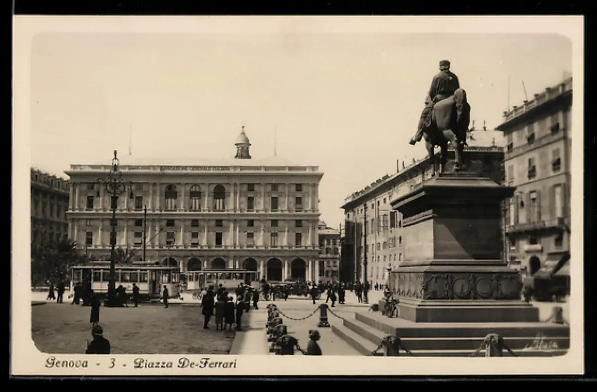 AK Genova, Piazza De Ferrari, Strassenbahn