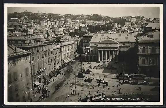 AK Genova, Piazza de Ferrari, Strassenbahn