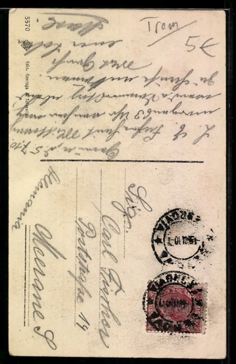 alte Ansichtskarte, gelaufen 1910, Bugspur li. oben, guter Zustand
