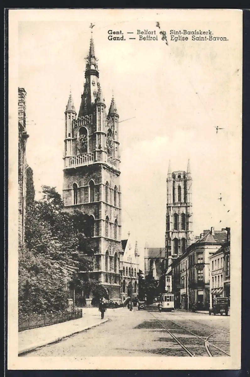 AK Gent, Belfort en Sint-Baafskerk, Strassenbahn