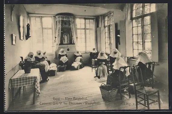 AK Gent, Klein Begijnhoi, Couvent O.L.V. ter Bloemen - Werkplasts, Nonnen bei Handarbeit