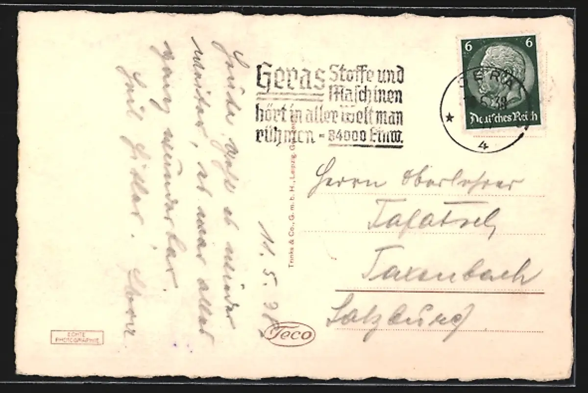 alte Ansichtskarte, gelaufen 1938, guter Zustand