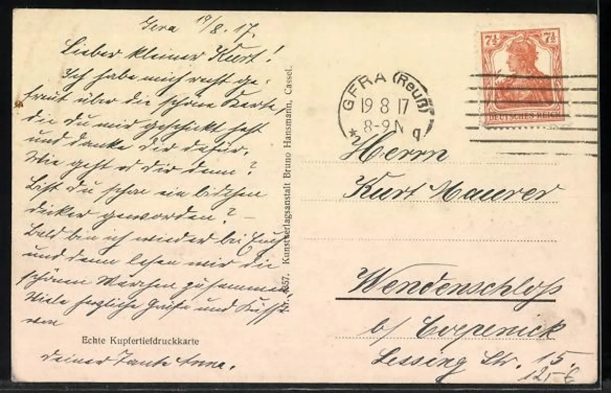 alte Ansichtskarte, gelaufen 1917, Stempelspur, guter Zustand