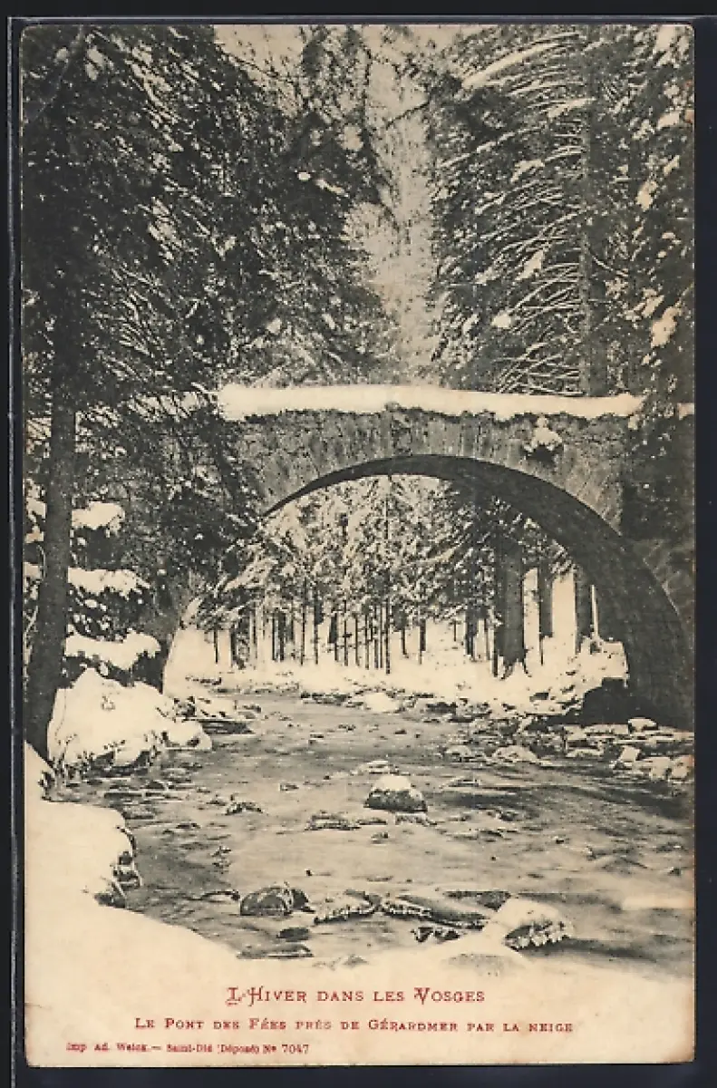 AK Gérardmer, Le Pont des Fées couvert de neige en hiver dans les Vosges