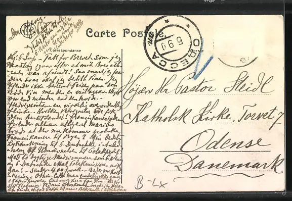 alte Ansichtskarte, gelaufen, Briefmarke entfernt, rückseitig Oberflächenschaden, Stempelspur, guter Zustand