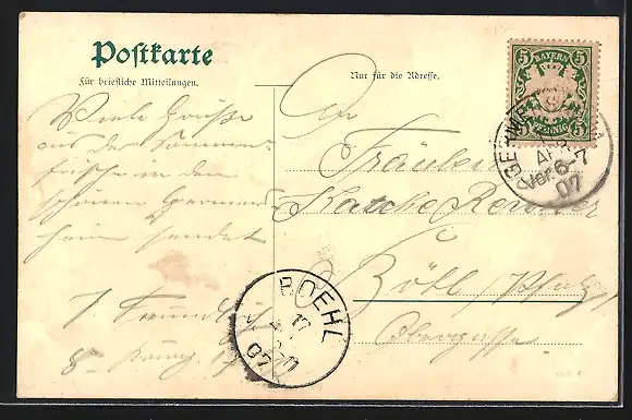 alte Ansichtskarte, gelaufen 1907, guter Zustand