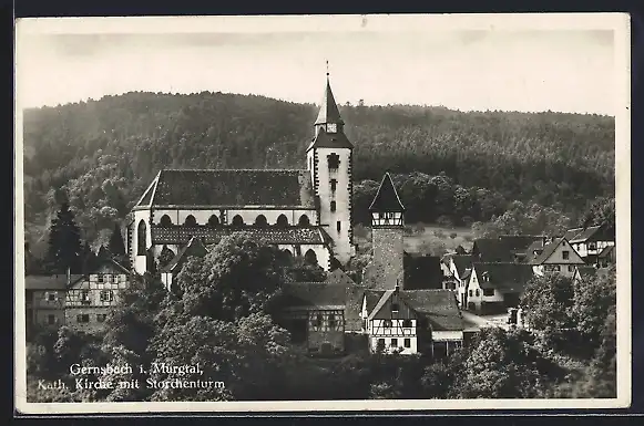 AK Gernsbach, Kath. Kirche mit Storchenturm