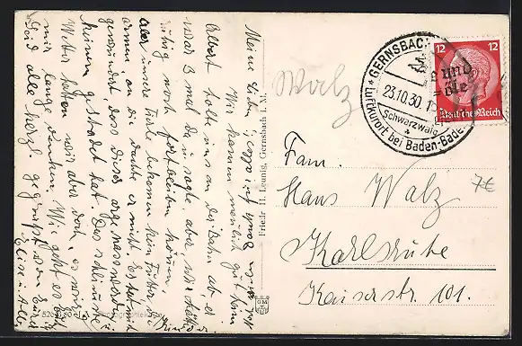 alte Ansichtskarte, gelaufen 1930, guter Zustand