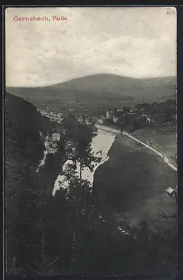 AK Gernsbach i. Murgtal, Flusspartie mit Blick zur Stadt