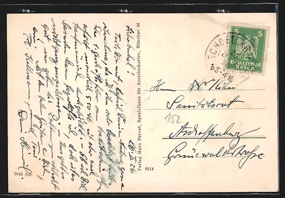 alte Ansichtskarte, gelaufen 1926, rückseitig Oberflächenschaden, guter Zustand