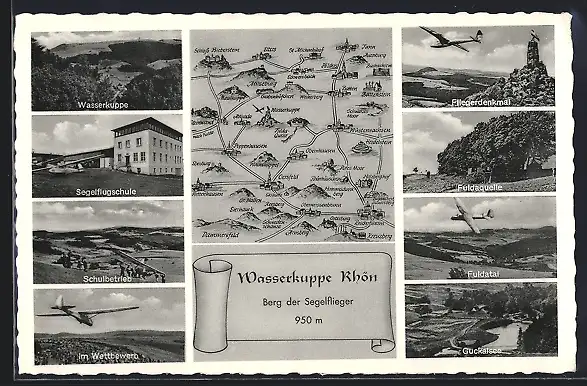 AK Gersfeld, Segelflugschule, Fliegerdenkmal, Fuldaquelle, Guckalsee