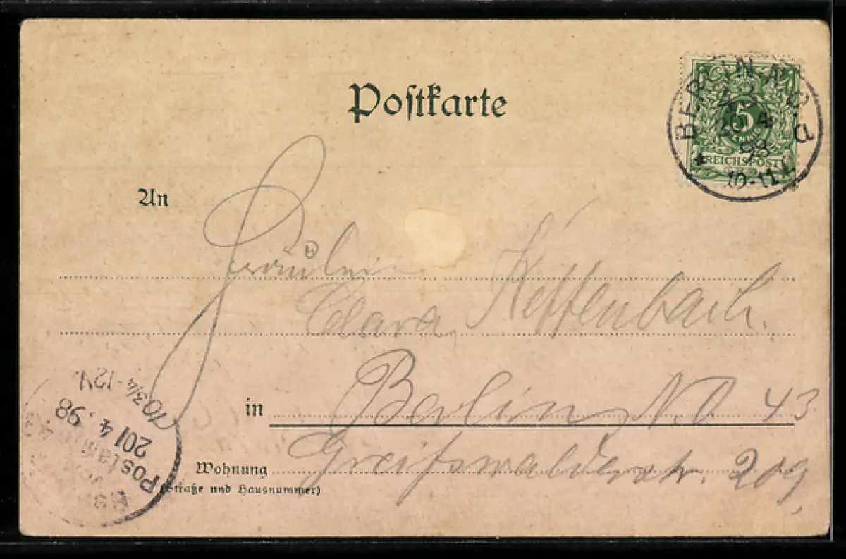 gelaufen 1898, Eckknicke re. unten u. li., guter Zustand