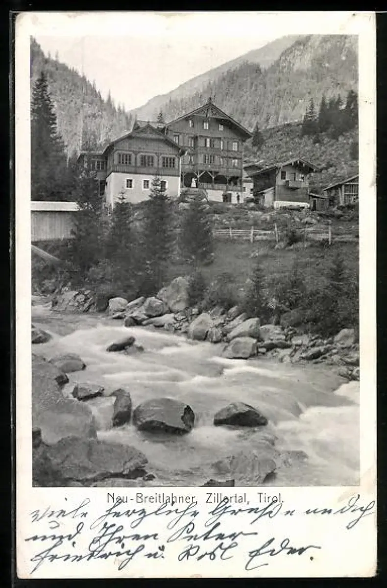 AK Ginzling, Alpenhaus mit tosendem Bach
