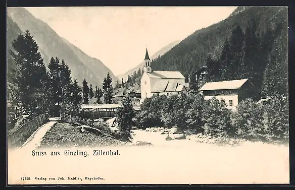 AK Ginzling / Zillerthal, Teilansicht mit Kirche