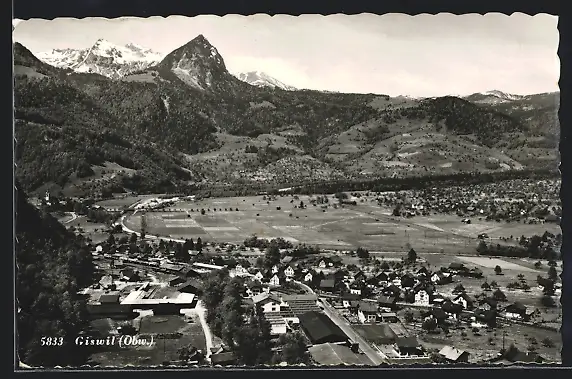 AK Giswil /Obw., Ortsansicht mit Baustelle