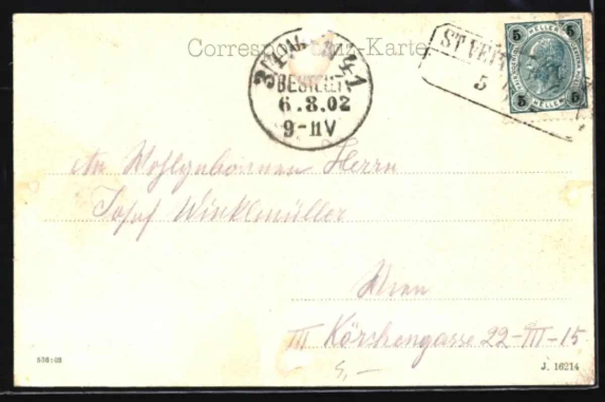 gelaufen 1902, rückseitig Klebe- und Papierreste, guter Zustand