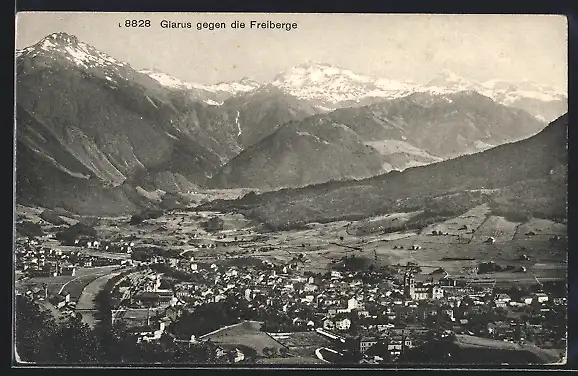 AK Glarus, Blick über die Stadt gegen die Freiberge