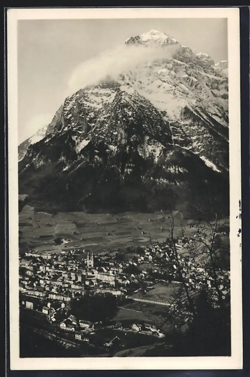 AK Glarus, Ortsansicht aus der Vogelschau mit Glärnisch