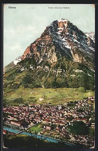 AK Glarus, Ortsansicht aus der Vogelschau mit Vorder-Glärnisch