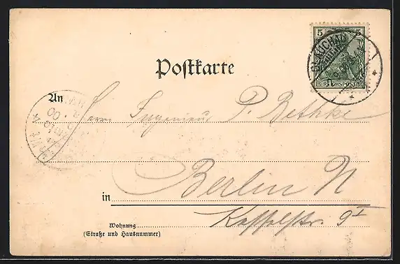 alte Ansichtskarte, gelaufen 1900, Eckknick rechts unten, guter Zustand