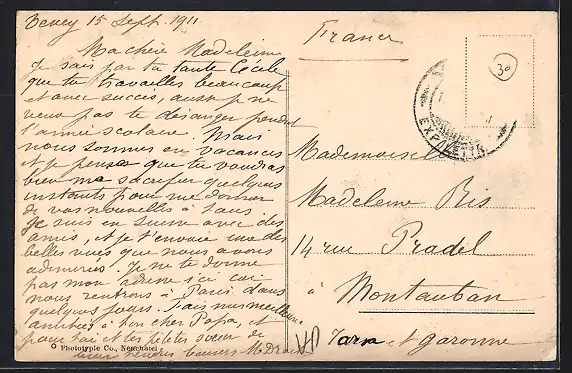 gelaufen 1911, Briefmarke entfernt, guter Zustand