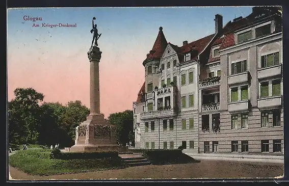 AK Glogau, Abendstimmung am Krieger-Denkmal