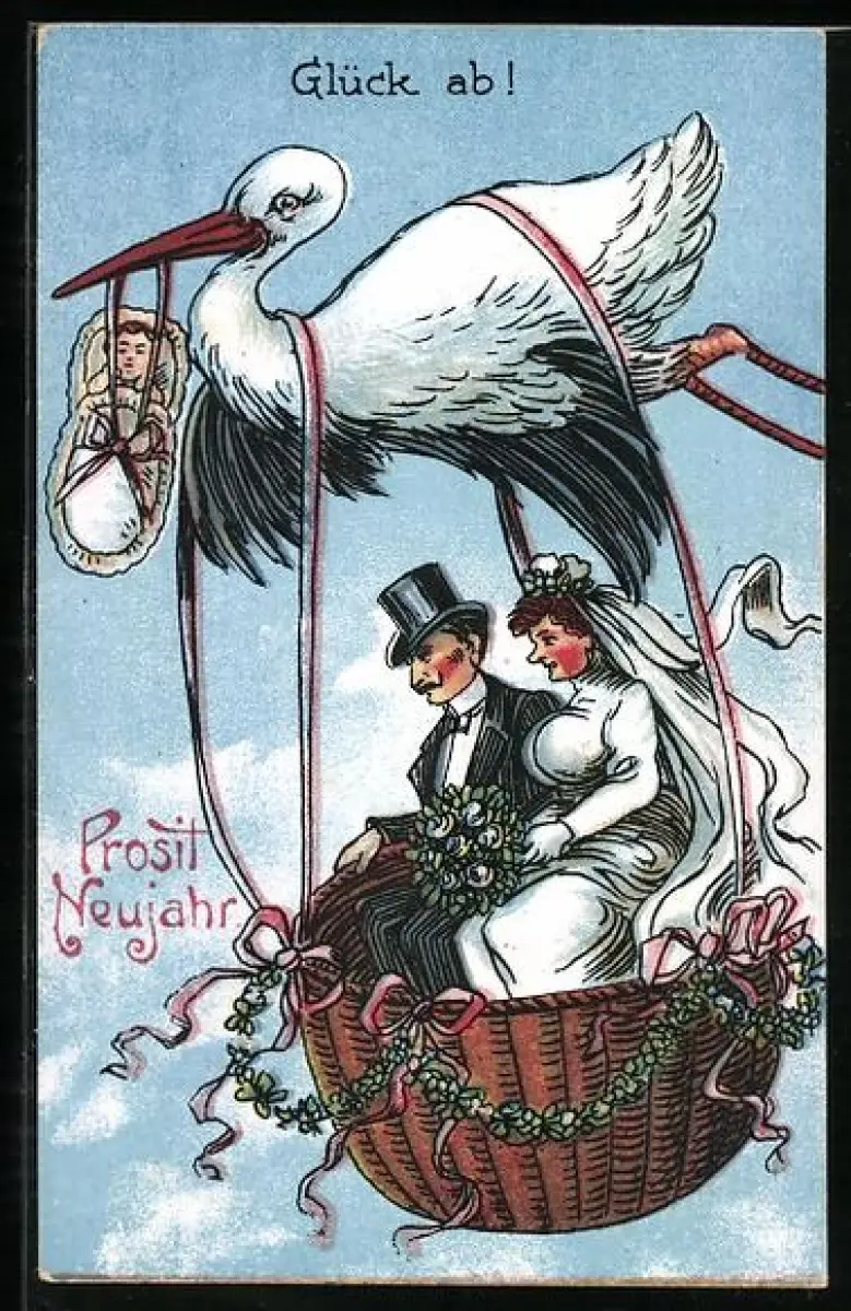 AK Glück ab, Der Klapperstorch-Express bringt Ehepaar und Baby in die Luft