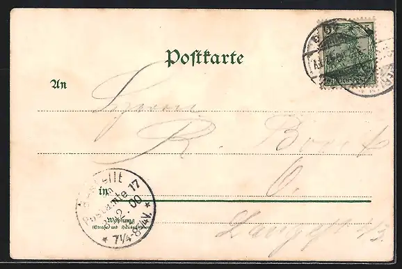 alte Ansichtskarte, gelaufen 1900, guter Zustand