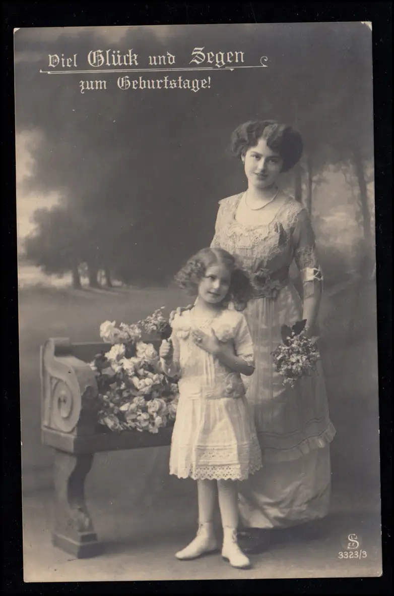 AK Glückwünsche Geburtstag: Mutter und Tochter mit Blumen, CUXHAVEN 15.5.1913