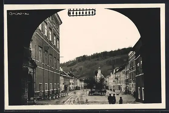 AK Gmünd, Blick durch das Tor auf den Stadtplatz