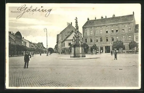 AK Göding / Hodonin, Ringplatz mit Denkmal