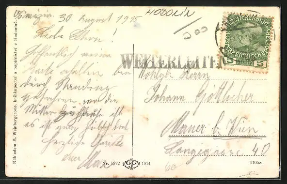 alte Ansichtskarte, gelaufen 1915, guter Zustand