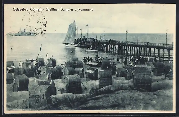AK Göhren / Ostseebad, Stettiner Dampfer ankommend