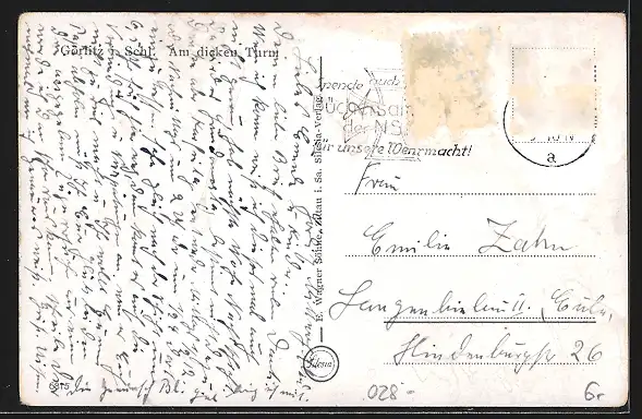 alte Ansichtskarte, gelaufen, Briefmarke entfernt, rückseitig Oberflächenschaden, minimaler Einriss re. oben, guter Zustand