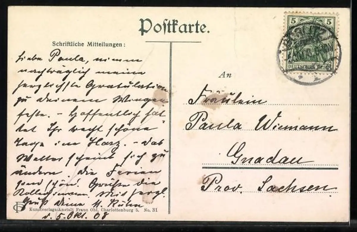 alte Ansichtskarte, gelaufen 1908, guter Zustand