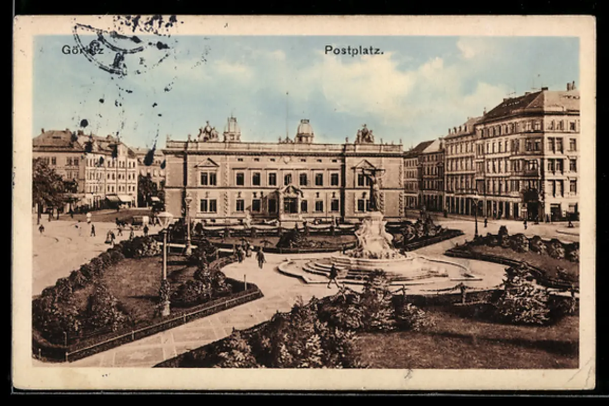 AK Görlitz, Postplatz mit Brunnen
