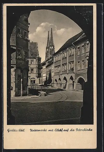 AK Görlitz /Schl., Untermarkt mit Blick auf Peterskirche