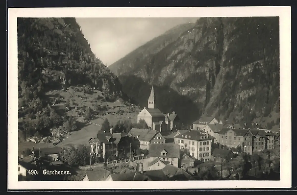 AK Göschenen, Ortsansicht aus der Vogelschau