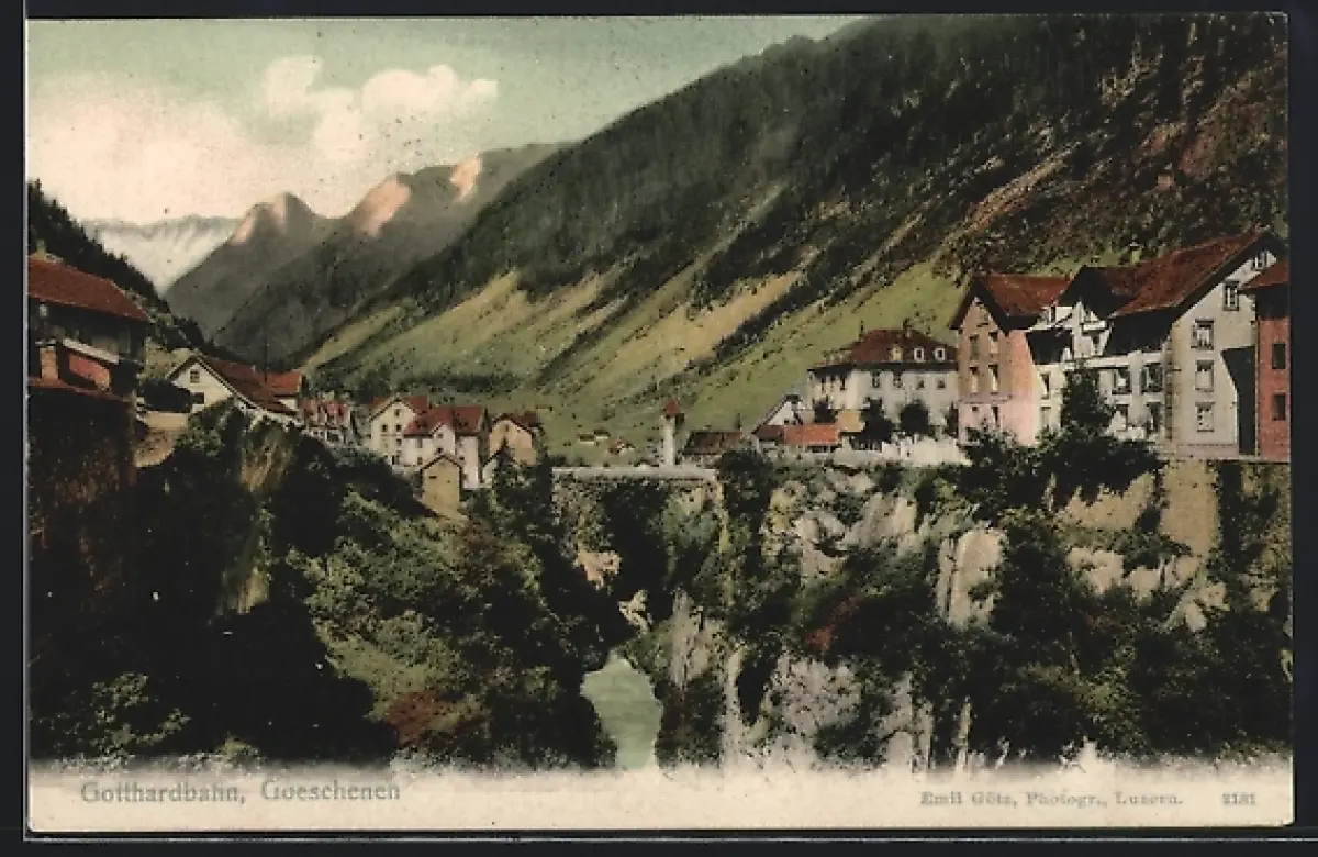 AK Göschenen, Teilansicht mit Gotthardbahn