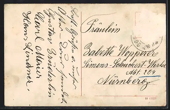 alte Ansichtskarte, gelaufen, Briefmarke entfernt, rückseitig Oberflächenschaden, guter Zustand