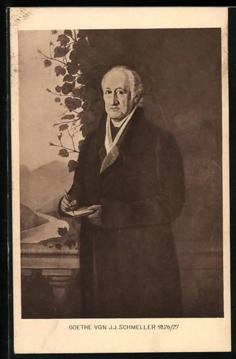AK Goethe mit einem Notizbuch in der Hand