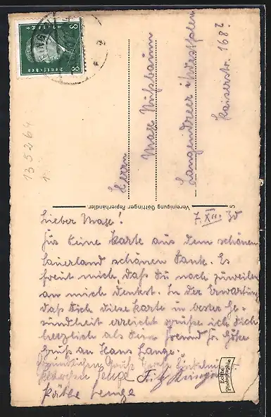 alte Ansichtskarte, gelaufen 1930, Eckknick li. unten, guter Zustand