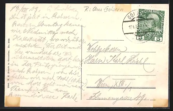 gelaufen 1909, rückseitig Klebe- und Papierreste, guter Zustand