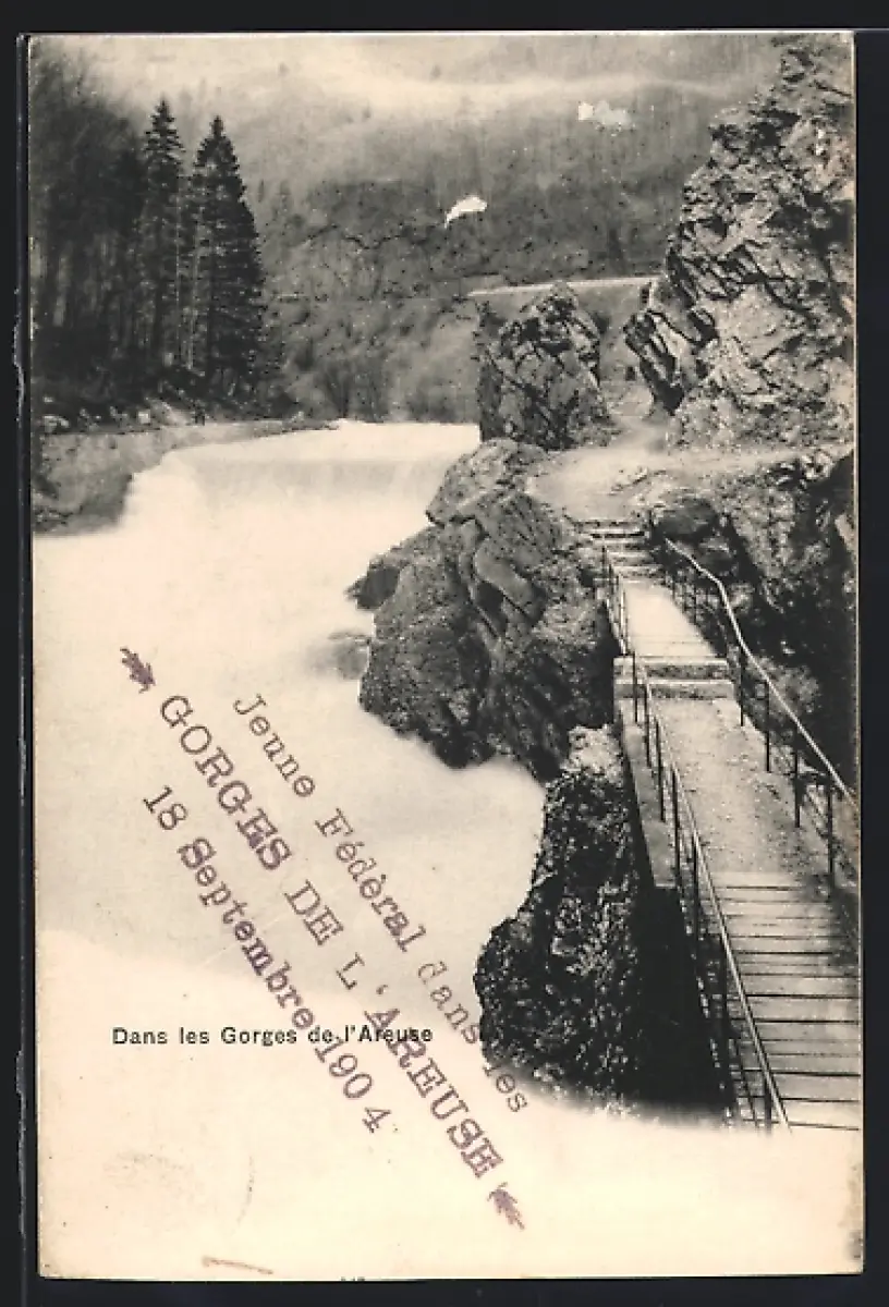 AK Gorges de l`Areuse, Dans les Gorges de l`Areuse, Jeune Fédèral 1904